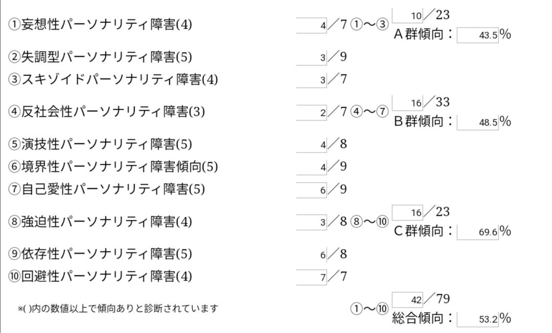 反社会性パーソナリティ障害と自己愛性パーソナリティ障害が顕著に出たわ